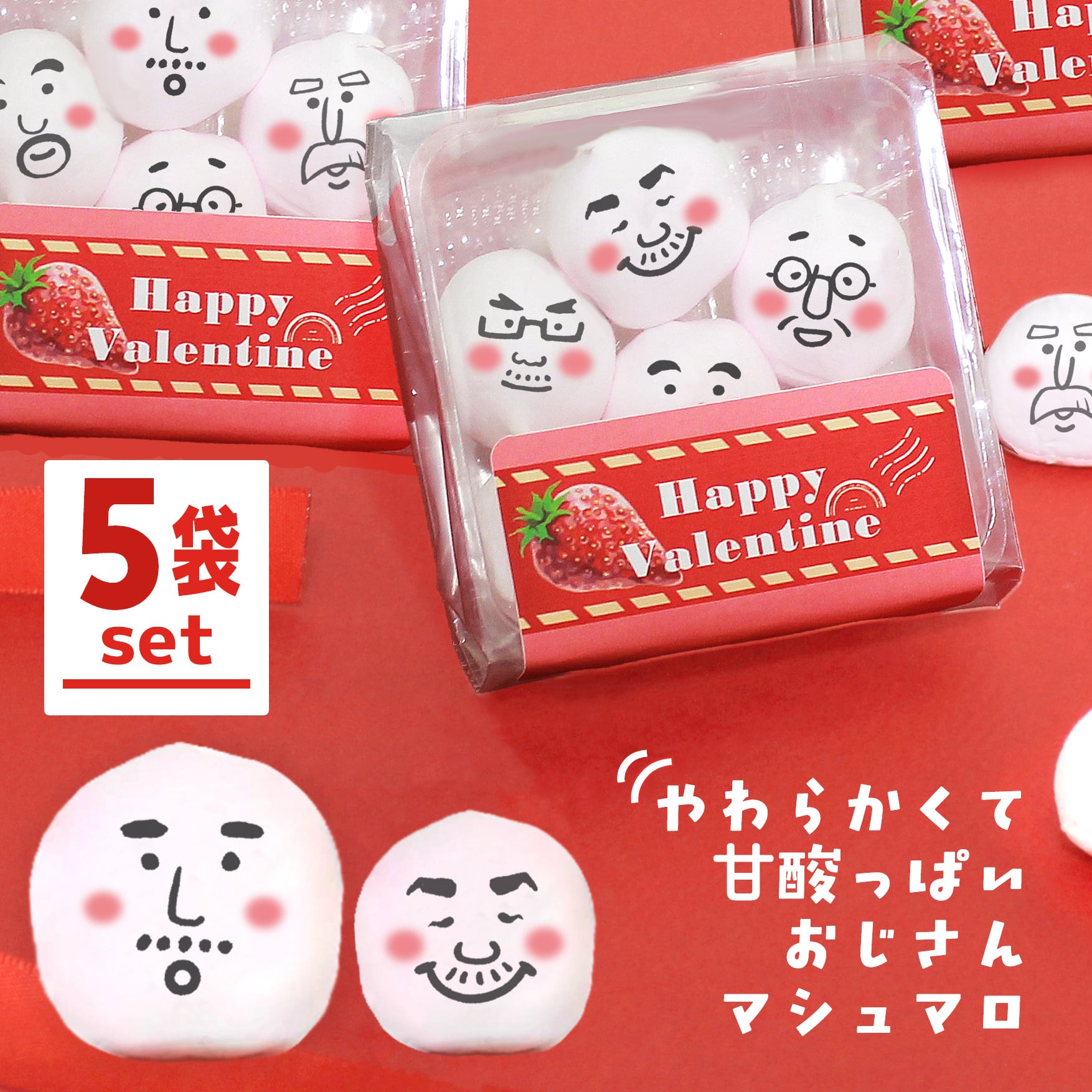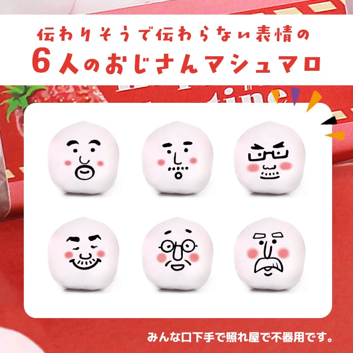 送料無料 バレンタイン おじさん マシュマロ お菓子 お配り 6個入り×5袋セット 小分け 大量 友達 かわいい 顔 おもしろ 面白い 楽しい 変わった プレゼント ギフト プチギフト 贈り物 バレンタインデー 配る 楽しい やわらかい 甘酸っぱい いちご 2026 チョコ以外