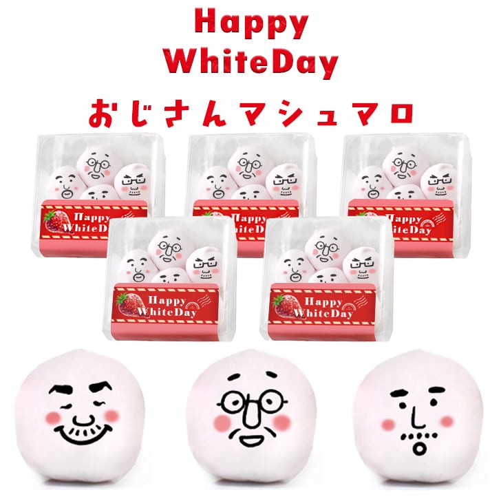 送料無料 おじさん マシュマロ お菓子 お配り 6個入り×5袋セット 小分け 大量 友達 かわいい 顔 おもしろ 面白い 楽しい 変わった プレゼント ギフト プチギフト 贈り物 バレンタインデー 配る 楽しい やわらかい 甘酸っぱい いちご 2026 チョコ以外