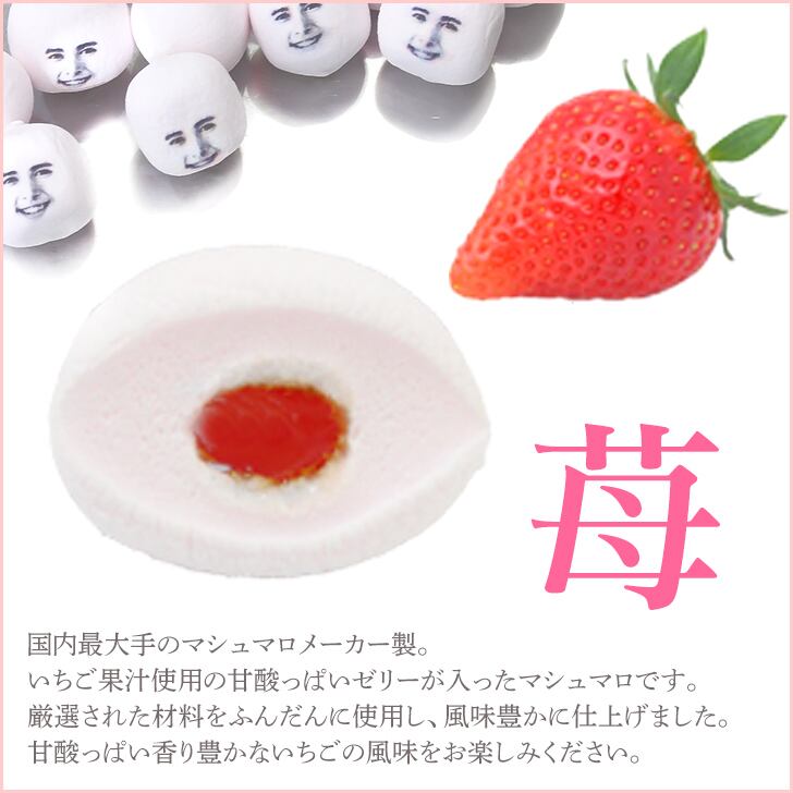 国内最大のマシュマロメーカー製。マシュマロの中に入った濃縮いちご果汁でお味も楽しめます。