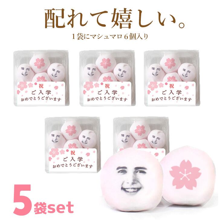 メール便送料無料 卒業 入学祝い プチギフト マシュマロ 6個入り×5袋セット おめでとう 記念 お祝い お配り 顔 顔写真 写真プリント おもしろ 面白い スイーツ お菓子 配れる 大量 プレゼント オリジナル ギフト 友達 同級生 先生 卒業式 入学式 SNS いちご ウケる ウケ狙い