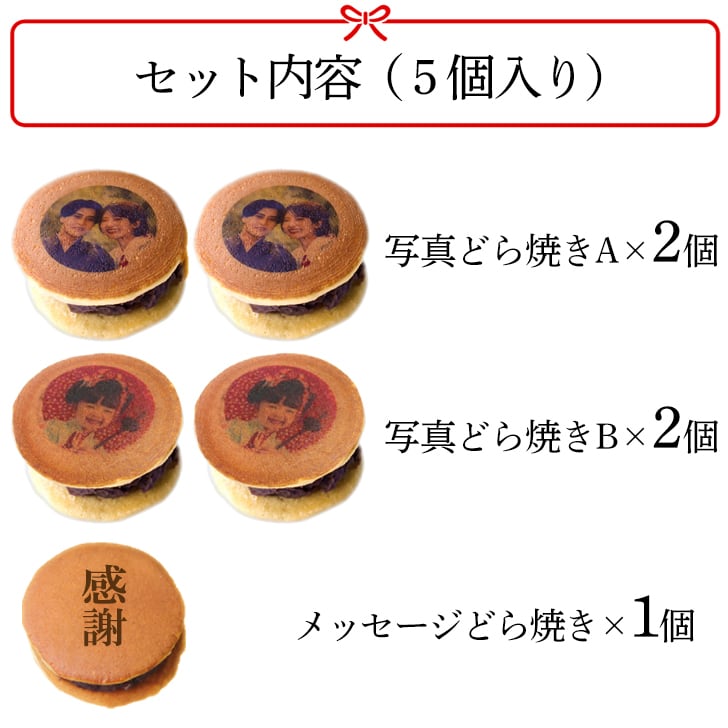 母の日 【2枚OK】 写真プリント どら焼き 5個セット どら焼 スイーツ つぶあん 和菓子 ドラ焼き どらやき お祝い 贈答品 プレゼント お菓子 粒あん 写真入り 文字 メッセージ 面白い おもしろい おもしろ オリジナル 感謝 御祝 誕生日 お返し ギフト 有名 5個入