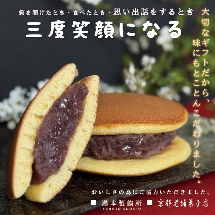 どら焼きの皮は丹波地方の新鮮な特大たまごと最高級のきめの細かい小麦粉、そして砂糖とはちみつを使って焼き上げています。