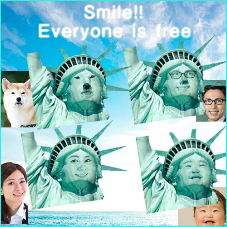 自由の笑顔 顔Tシャツ ブラック 顔写真で作れます プレゼント おもしろい グッズ 誕生日プレゼント オーダーメイド 写真入り