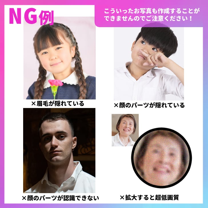 ・頂いたお写真によって仕上がりのクオリティが変わります。